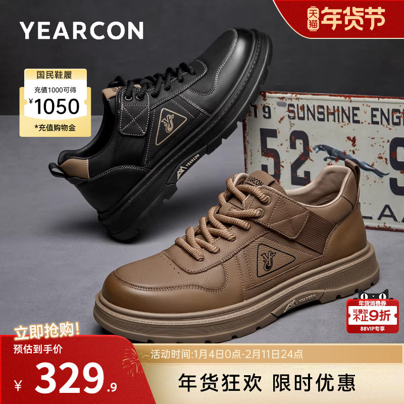 骆驼2025冬季英伦风男鞋舒适真皮厚底经典休闲鞋工装皮鞋男士板鞋