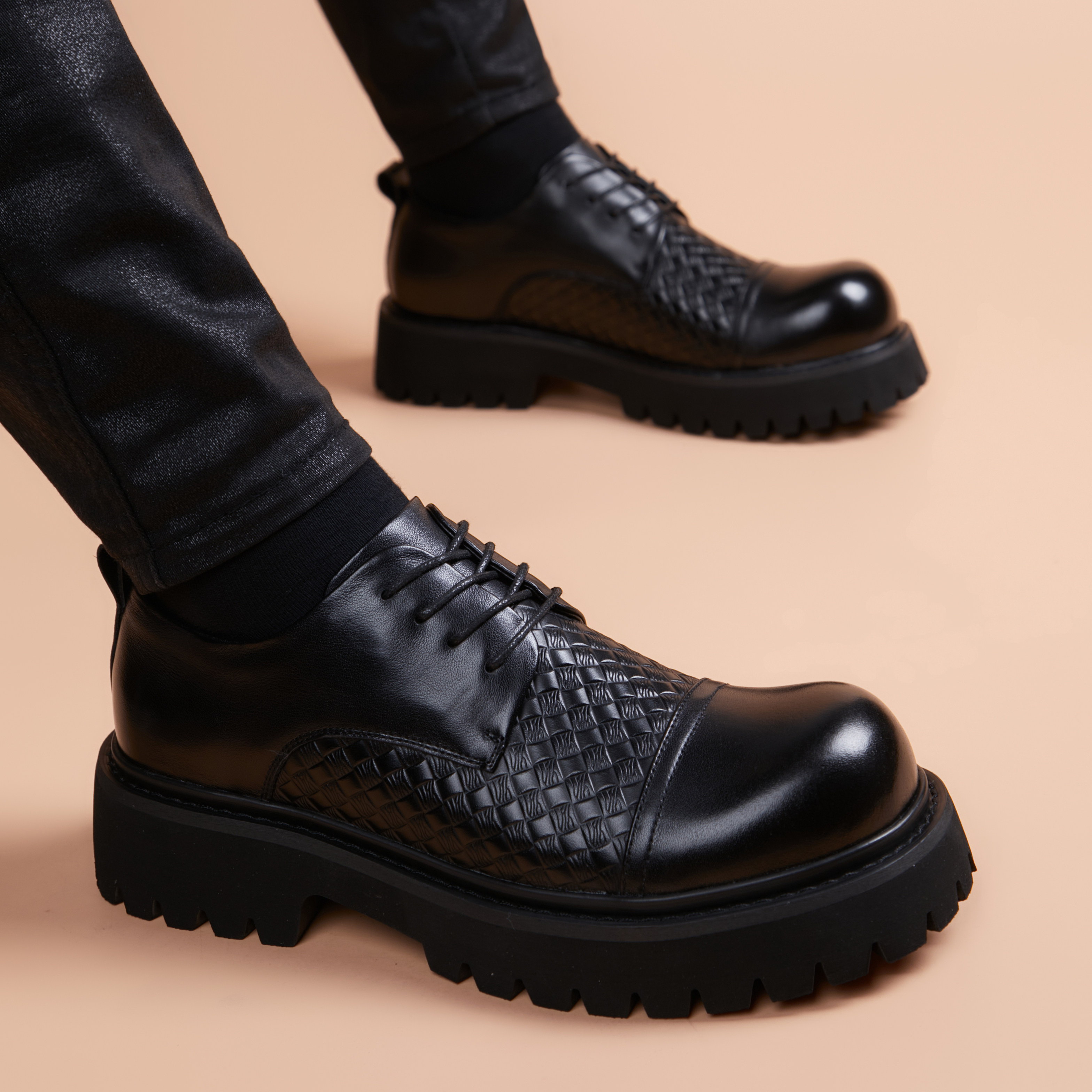 - 大圆头皮鞋男
