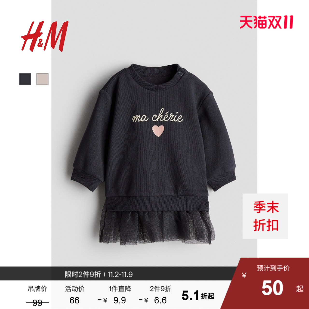 HM童装女婴连衣裙秋季印花圆领长袖印花卫衣薄纱裙公主裙1246188