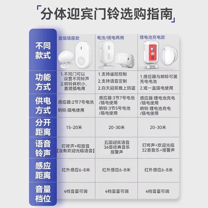 分体欢迎光临门铃感应器店铺进门迎宾器家用红外线报警器感应门铃