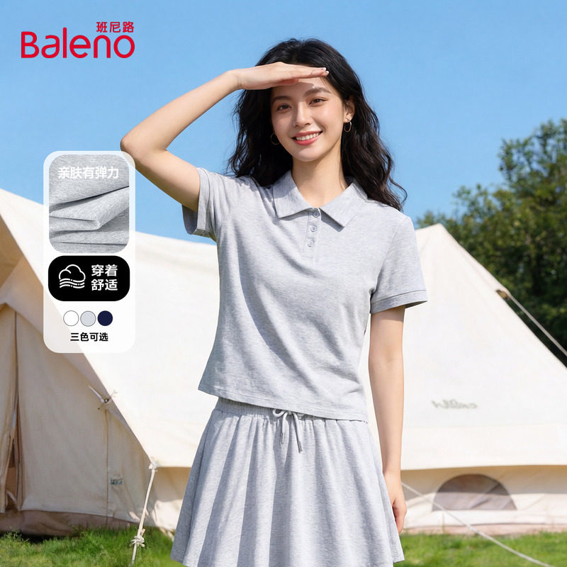 班尼路灰色polo衫半身裙套装女款2026超火运动穿搭一整套两件套H