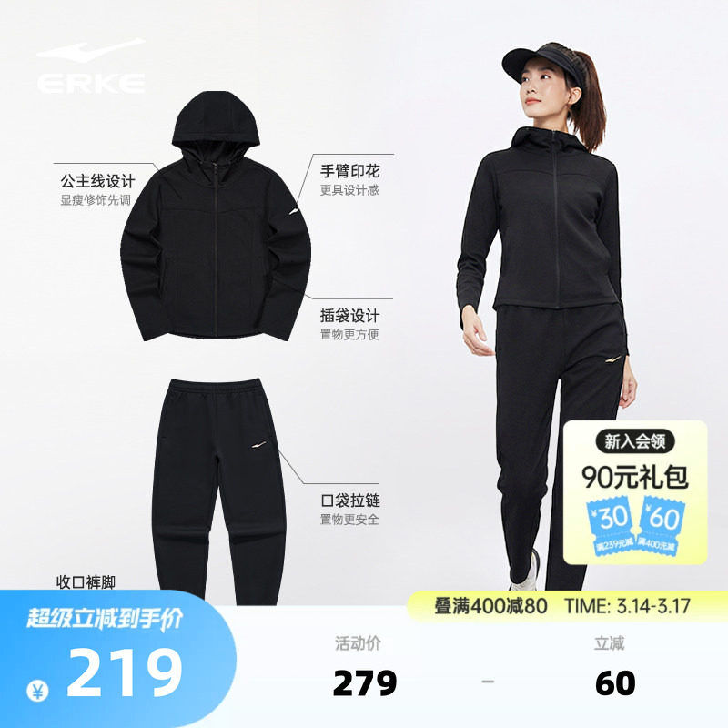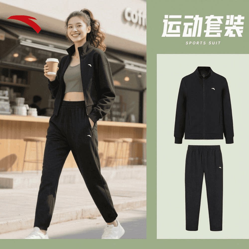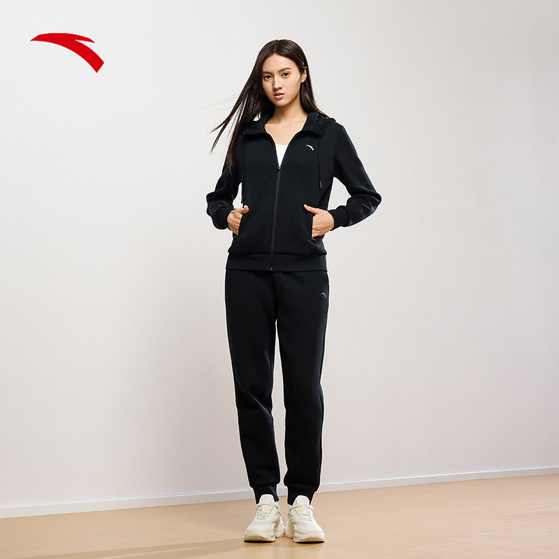 安踏运动套装女款2026新款春季连帽外套长裤两件套加绒保暖女装