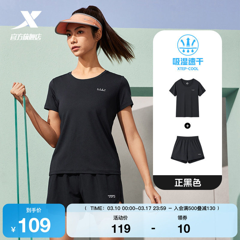 特步运动套装女款春夏季女士速干衣跑步运动服短袖t恤短裤两件套