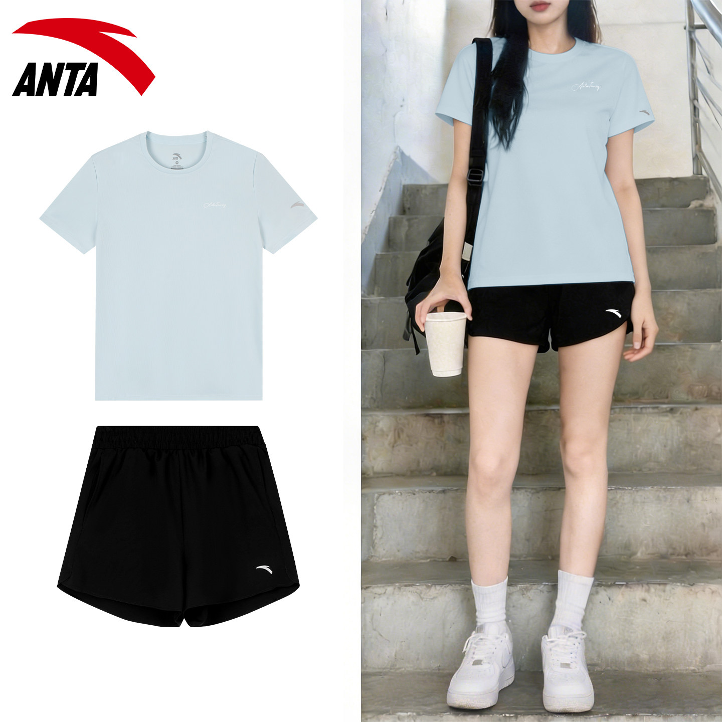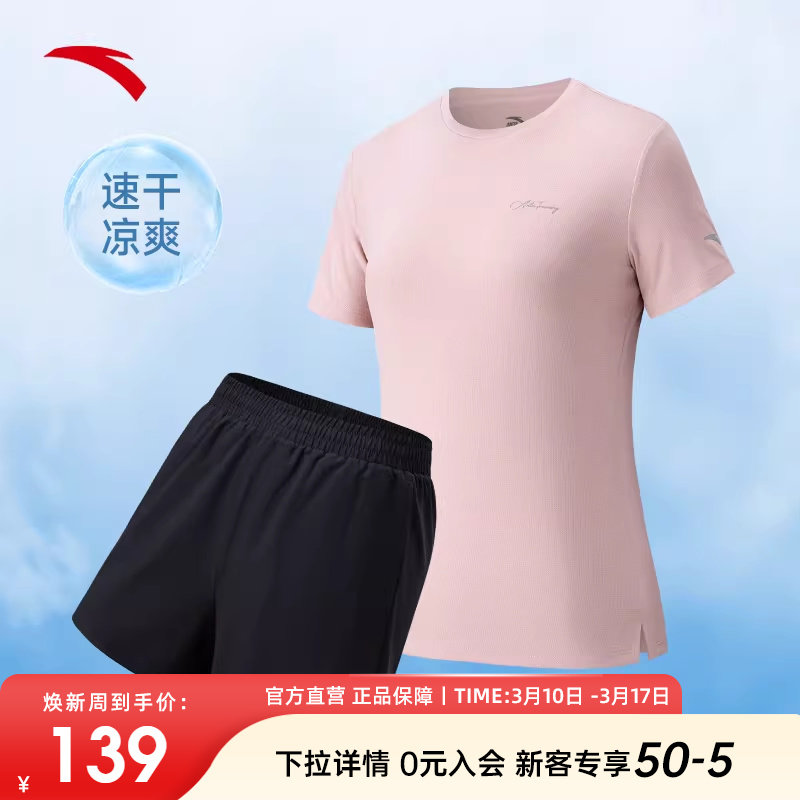 安踏运动套装女款短袖短裤两件套2026新款夏季速干透气跑步健身服