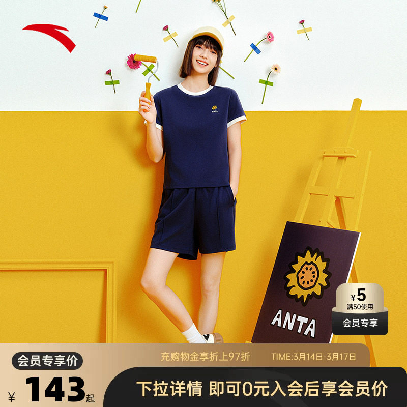 安踏速干运动套装女款2026夏季透气防走光短袖短裤妈妈夏装两件套