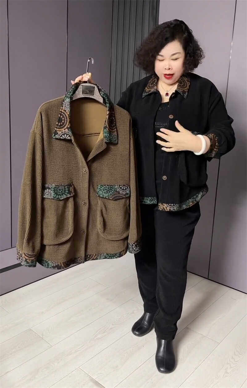 2024春秋新款套装女款加肥加大码雪尼尔条绒拼接碎花两件套胖妹妹