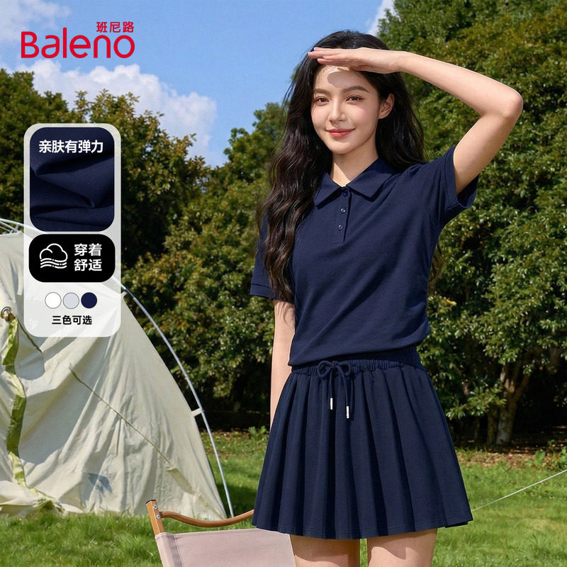 班尼路藏青色运动套装女款2026夏季新款polo衫半身裙穿搭两件套H