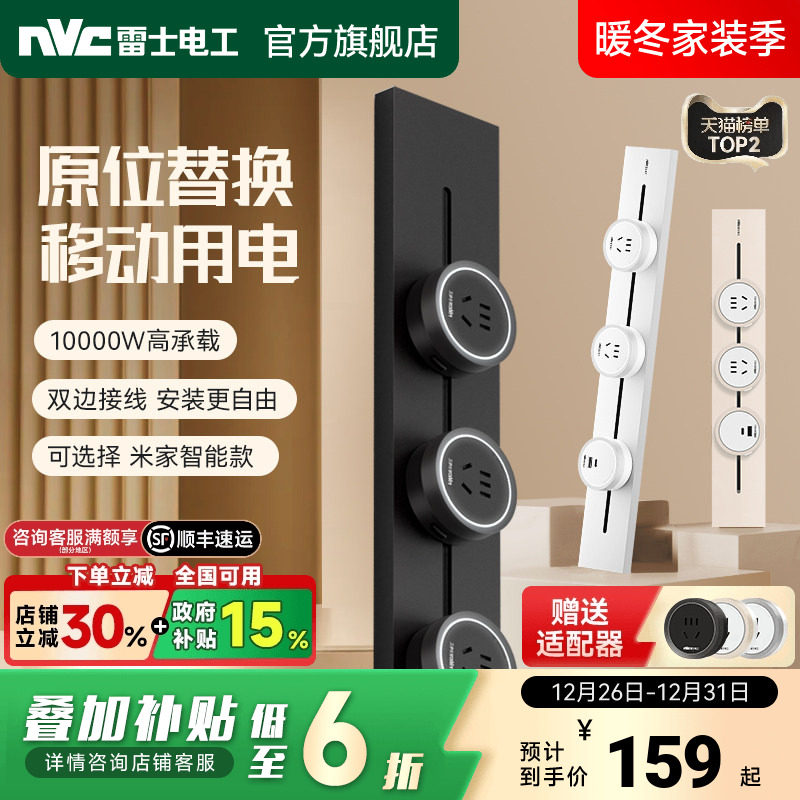 国际电工滑动导轨大间距轨道插座扩展客厅卧室厨房拓展多功能插排