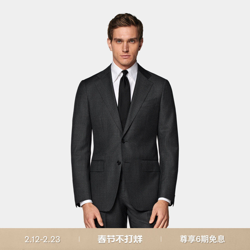 SUITSUPPLY深灰色S110支羊毛外套修身男士西装上衣