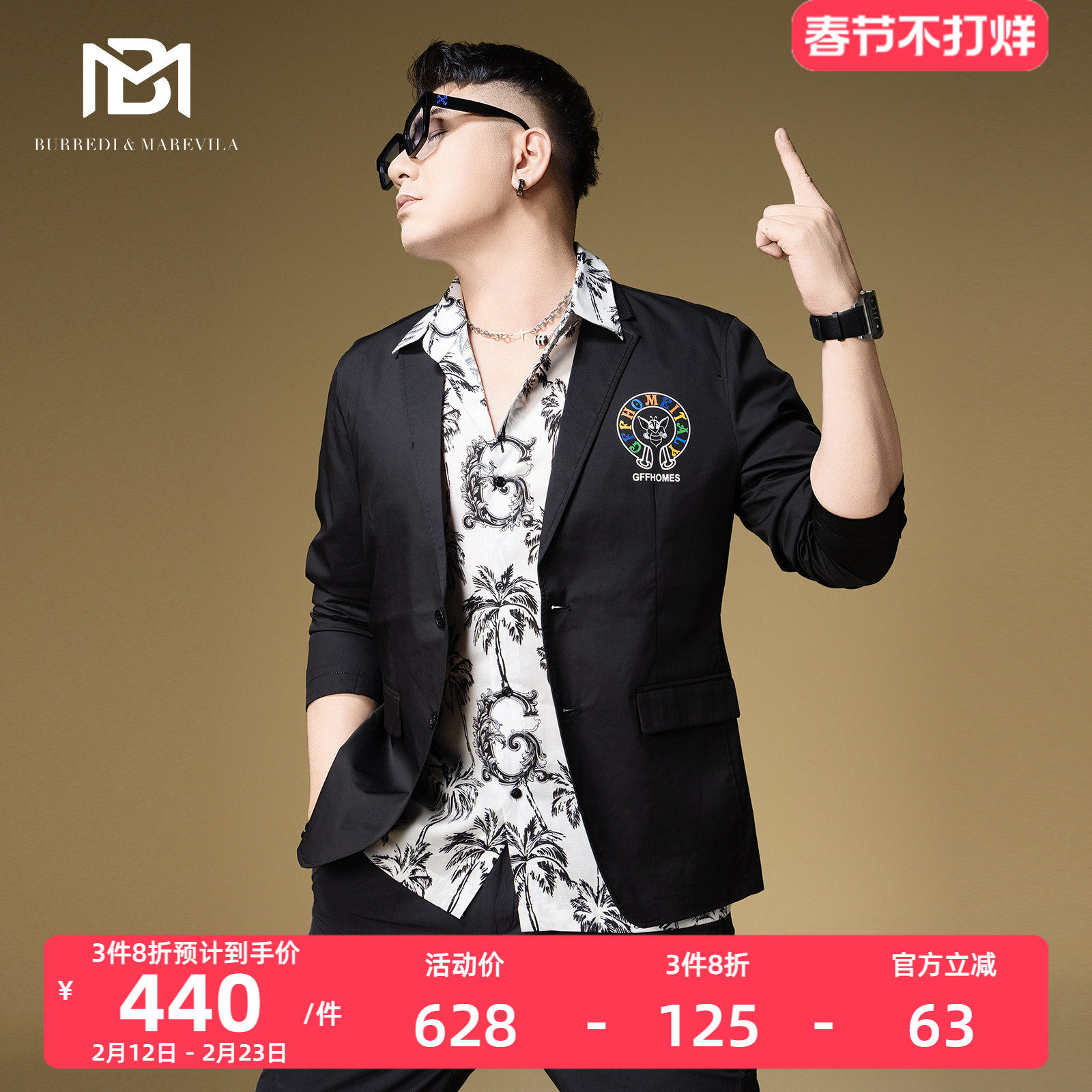 BM男士西装外套2025新款潮牌小蜜蜂烫钻印花休闲西服男便单西薄款