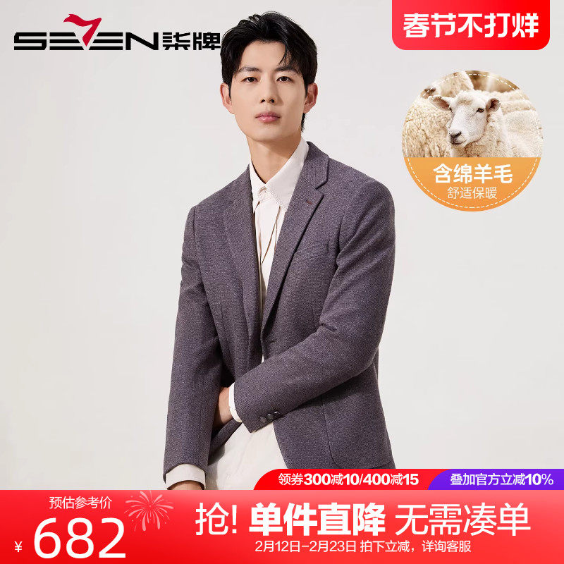 【含羊毛单西】柒牌时尚提花休闲西服男2025秋冬新款男士西装外套