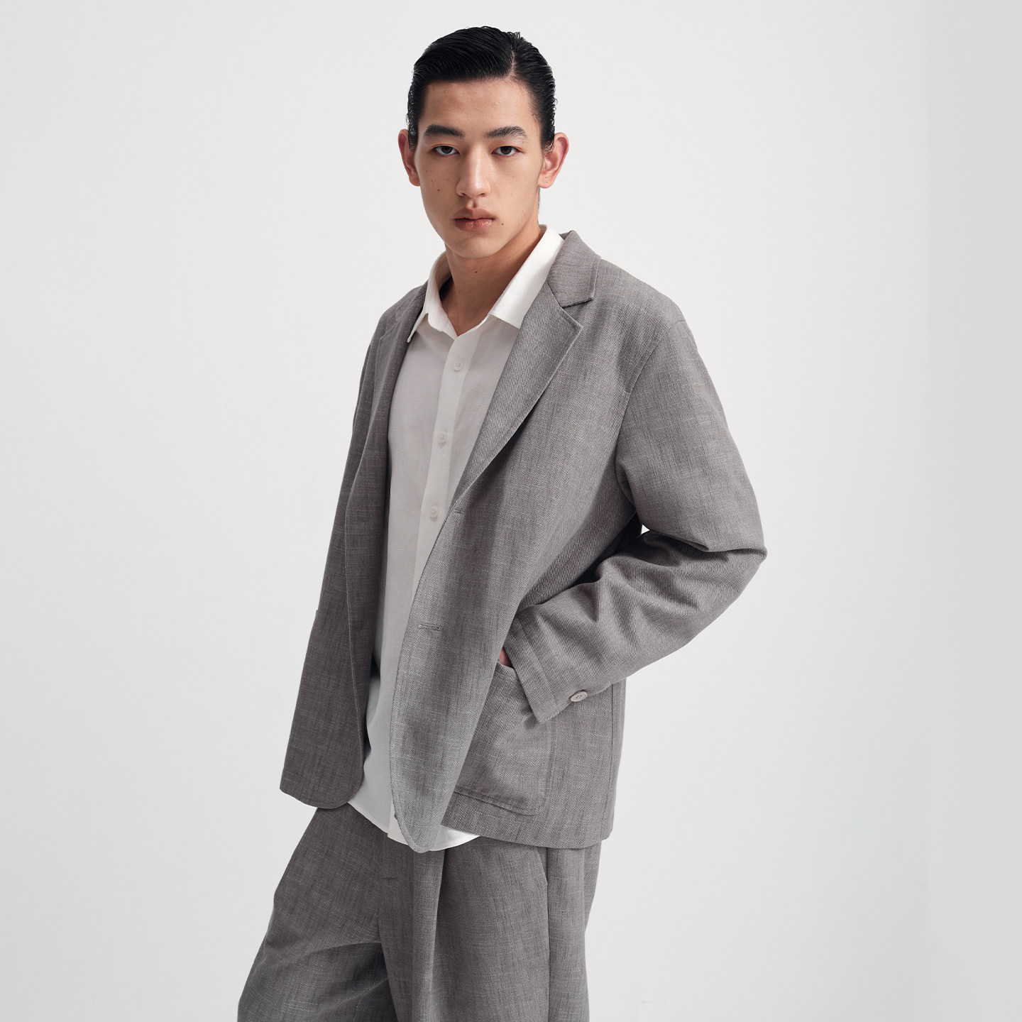 ESURO休闲西服男2026春款微阔宽松舒适百搭极简通勤男士西装外套