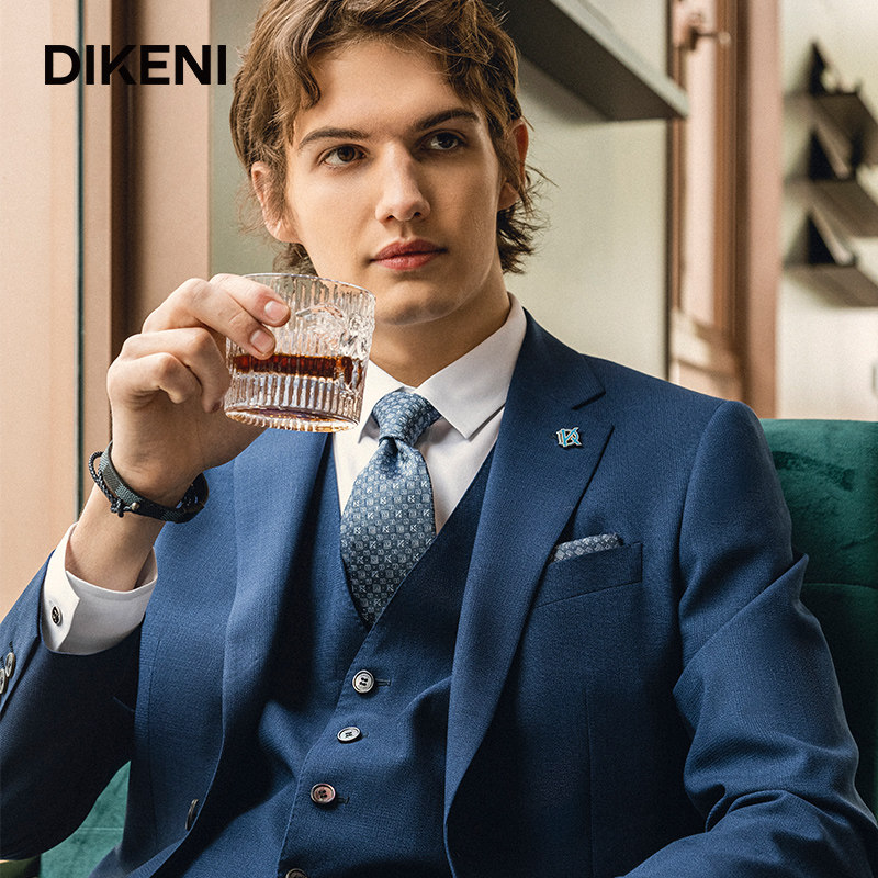 吉约蒙双排扣西服男士套装蓝色高级商务正装结婚新郎礼服西装外套