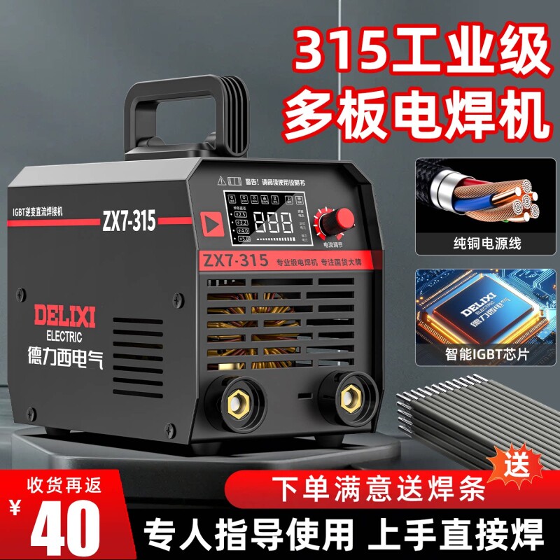 德力西电焊机220v家用380v工业级315便携不锈钢纯铜两用小型焊机