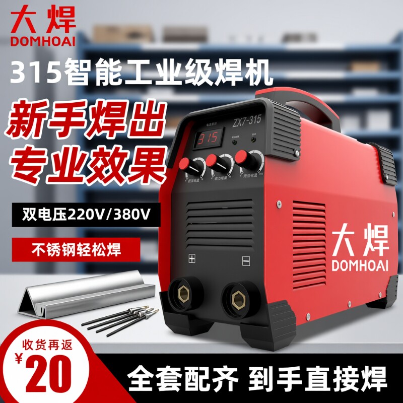 大焊电焊机220v家用380v工业级315便携式纯铜双电压小型两用焊机