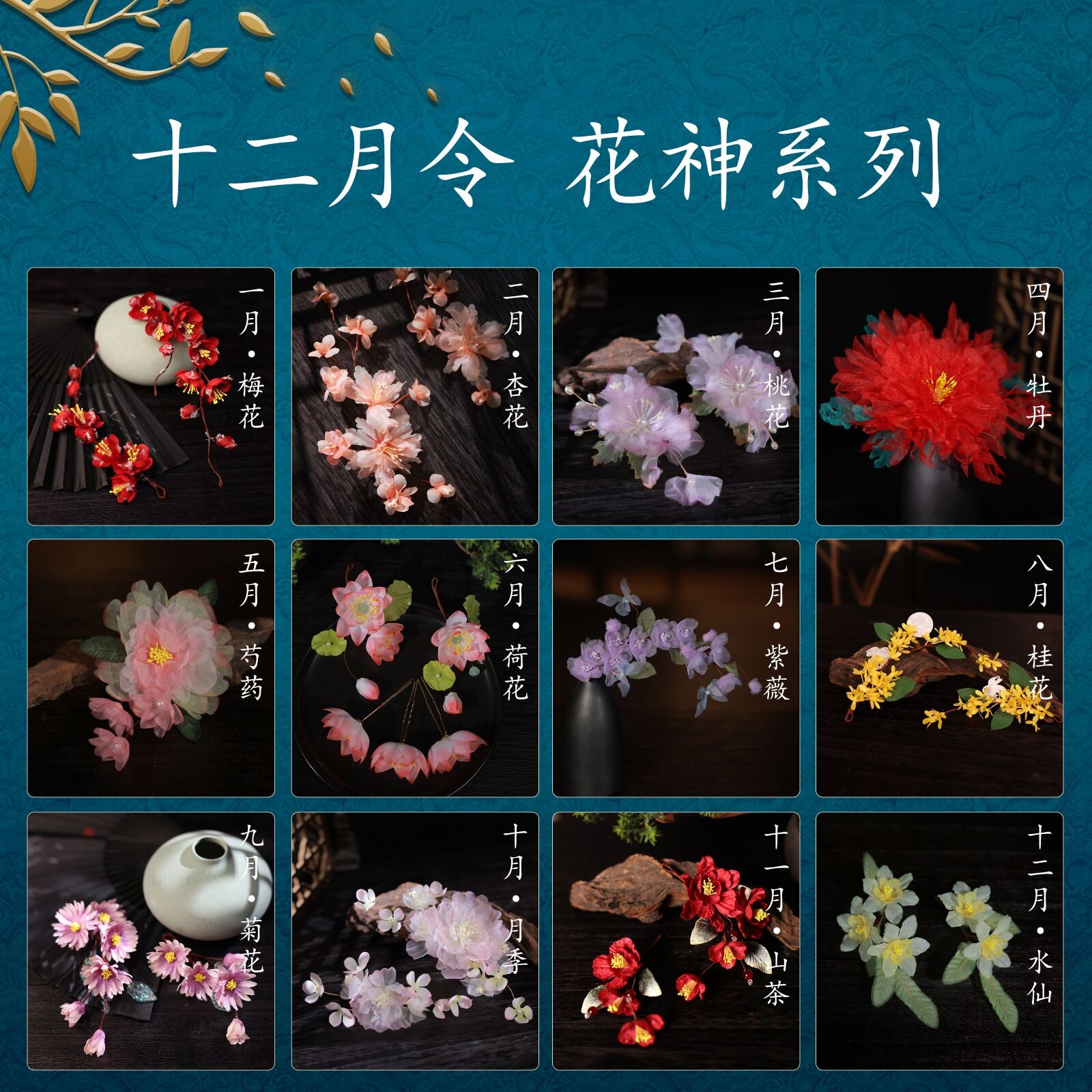 十二花神发饰合集古风头饰烫花头花牡丹花国风花朝节汉服配饰套装
