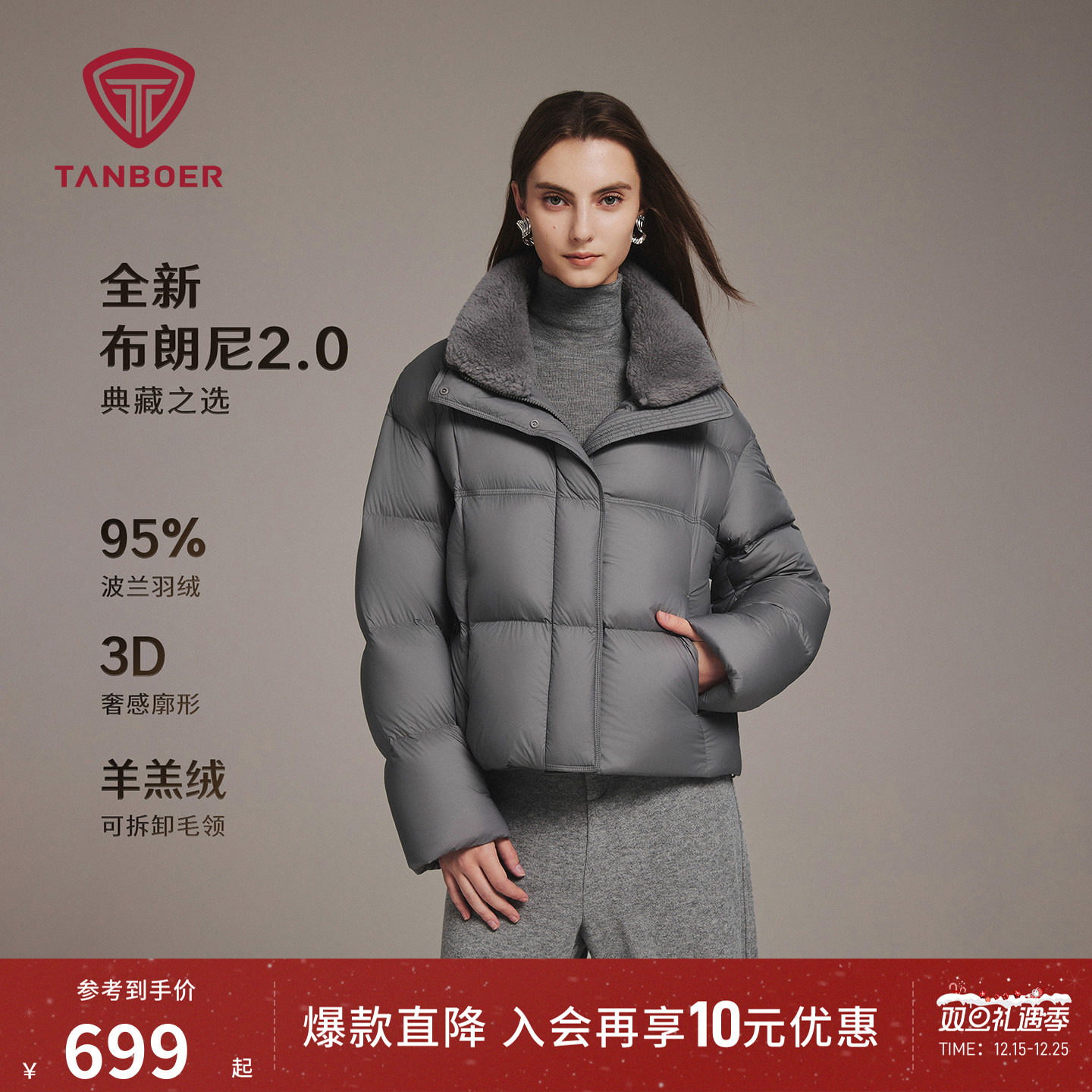 坦博尔25冬季新款布朗尼2.0羽绒服女士短款保暖显瘦廓形加厚外套