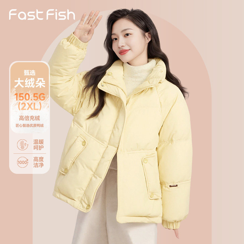 快鱼羽绒服2025年冬新款女士防风厚实立领休闲百搭小个子短款外套