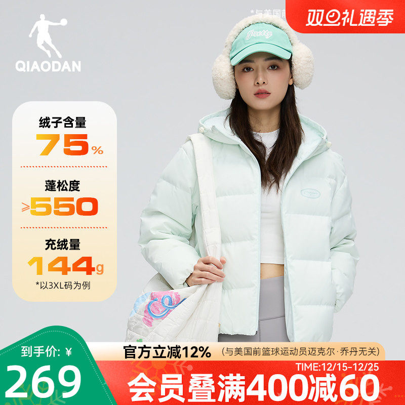 双11鸭鸭羽绒服女士2025冬季反季短款加厚可拆帽宽松保暖鸭绒外套
