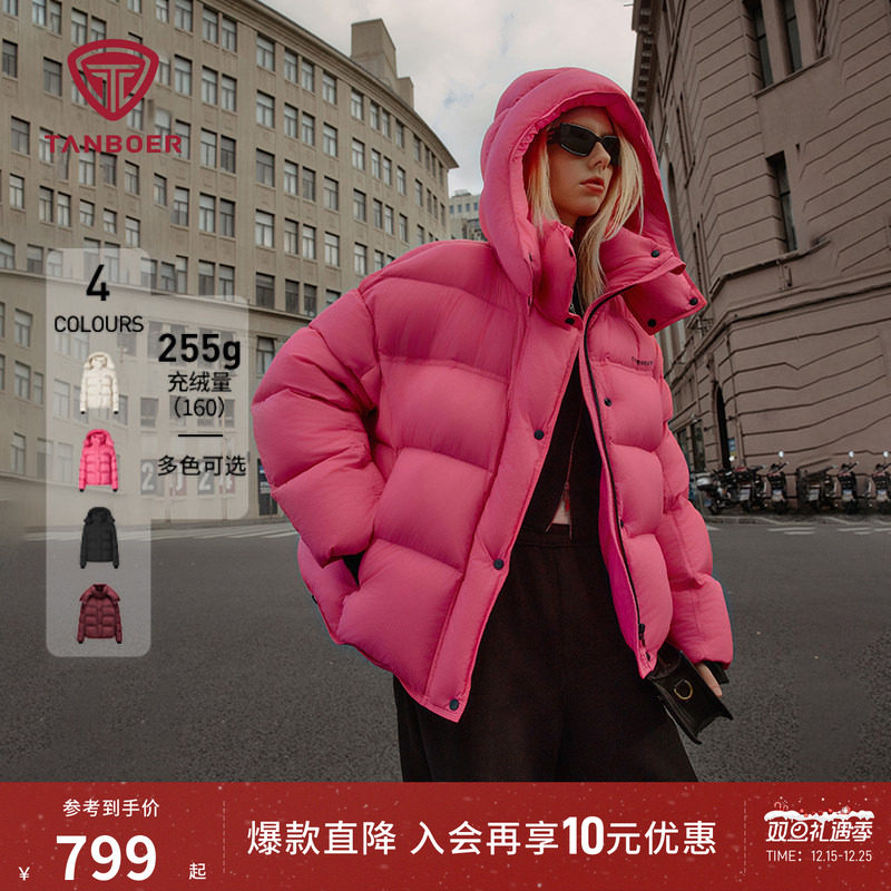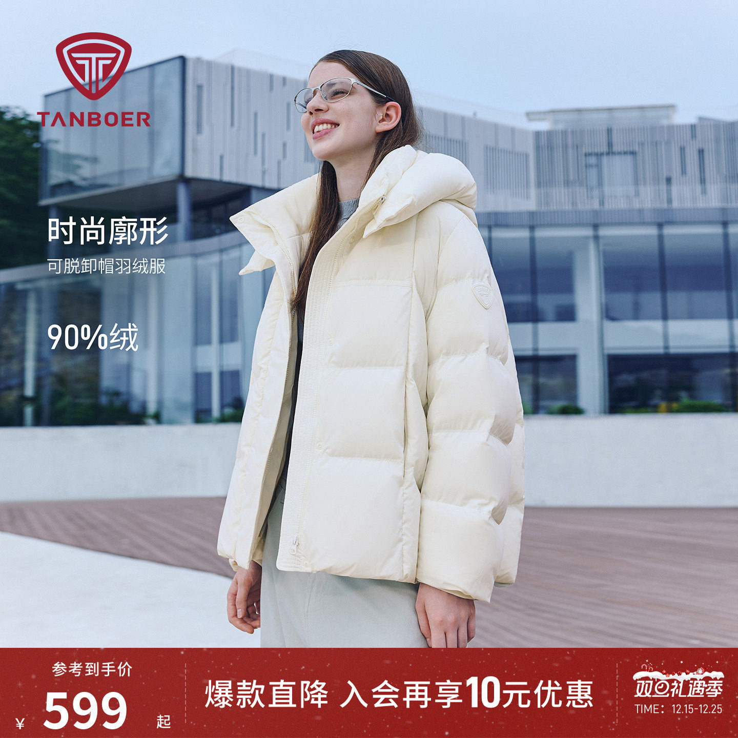 坦博尔冬季羽绒服女士短款可脱卸帽时尚廓形加厚保暖休闲时尚外套