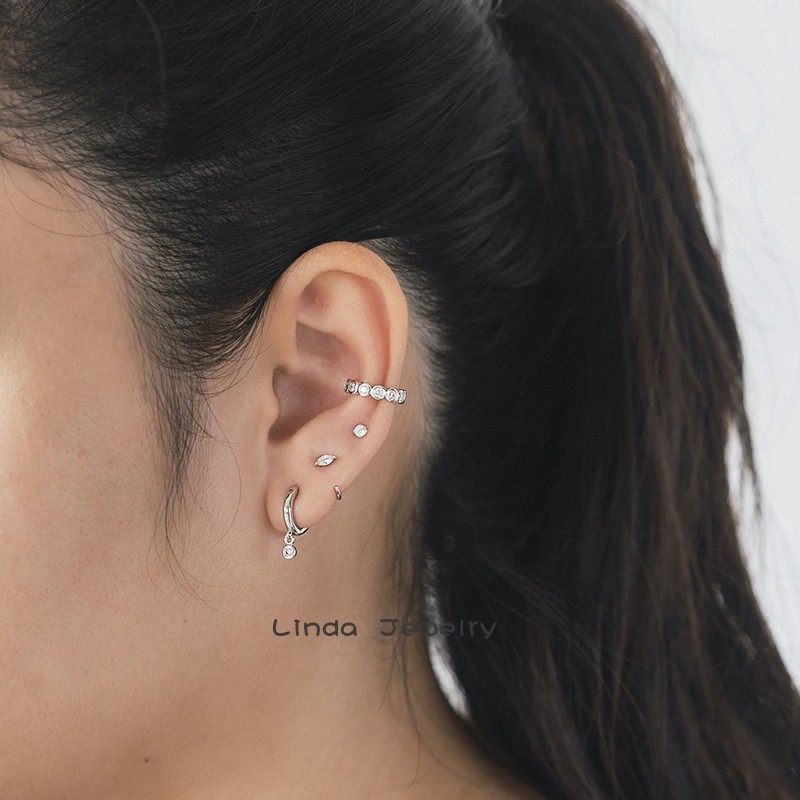 【CnHnOn脂肪商店】s925纯银迷你小钻圈排钻活彩锆石小耳圈耳钉