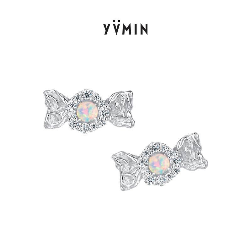 JXRXs925纯银白玉髓耳钉女小众设计感绝美耳环养耳洞小巧精致耳饰