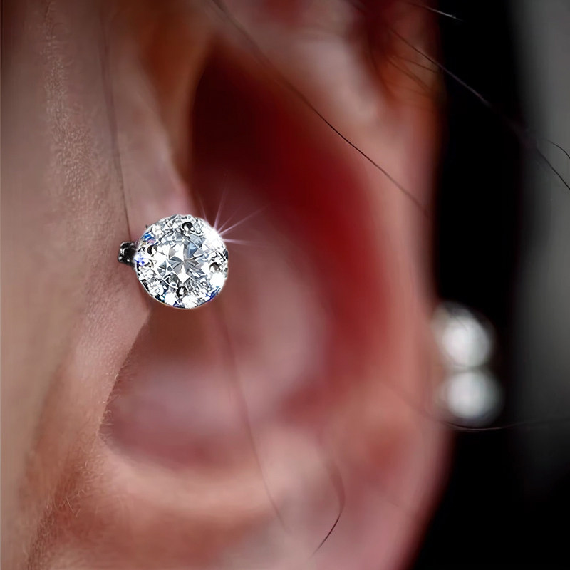 JASMINE*925纯银超闪一粒小耳钉2.5-6mm男女合成锆石耳饰耳骨钉