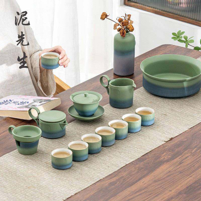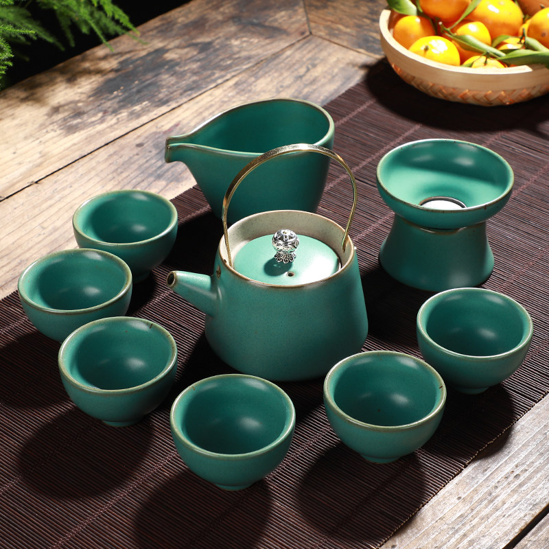 只此青绿粗陶茶具套装泡茶家用简约日式茶台陶瓷茶壶茶杯整套送礼