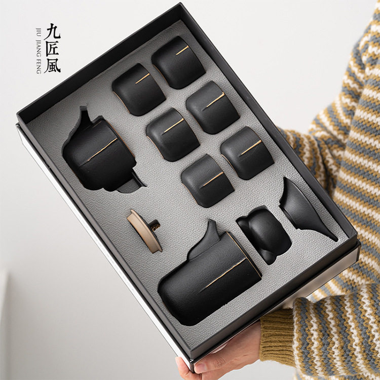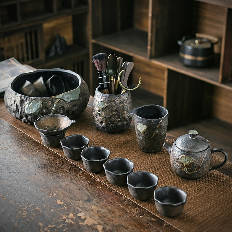 JOJO'S L. PD.紫泉涧.鎏金釉粗陶茶具套装功夫茶具陶瓷复古| 往东