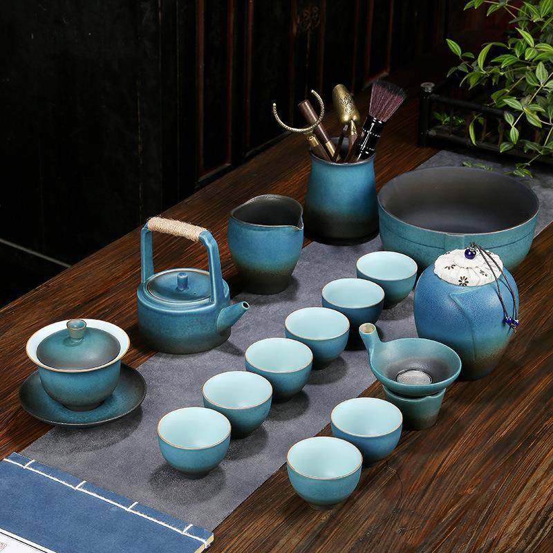 创意粗陶茶具套装家用客厅办公室会客陶瓷功夫泡茶器茶杯盖碗整套