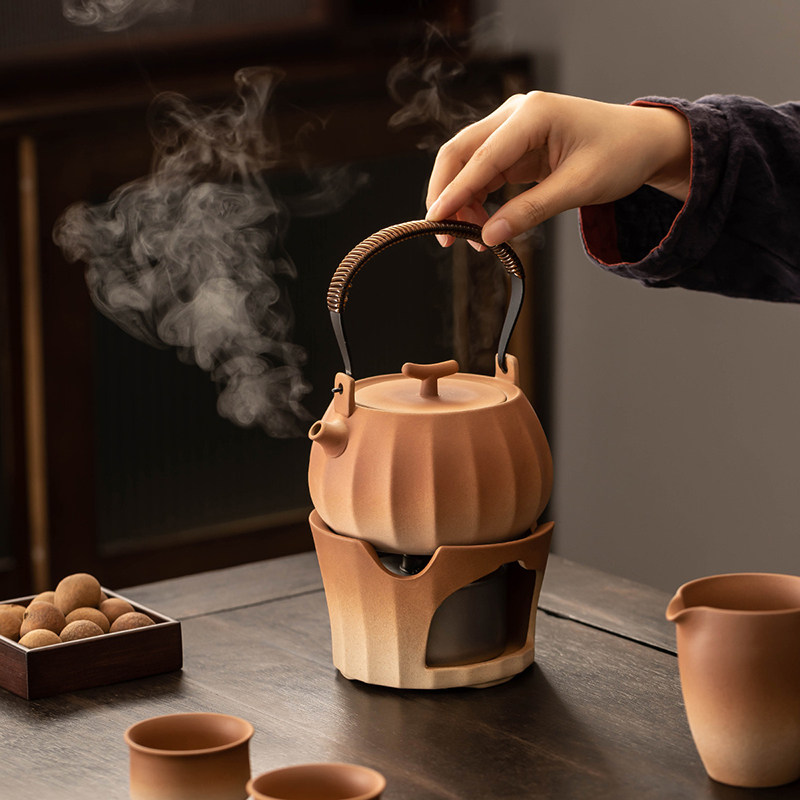 粗陶茶壶功夫茶具套装围炉煮茶壶温茶罐罐壶陶瓷家用柴烧南瓜整套