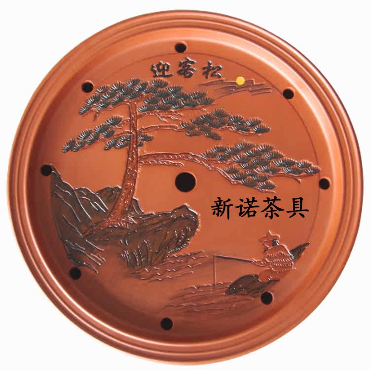 壶垫茶盘茶杯壶承功夫茶具粗陶茶具套装红泥茶盘金山古松14寸朱泥