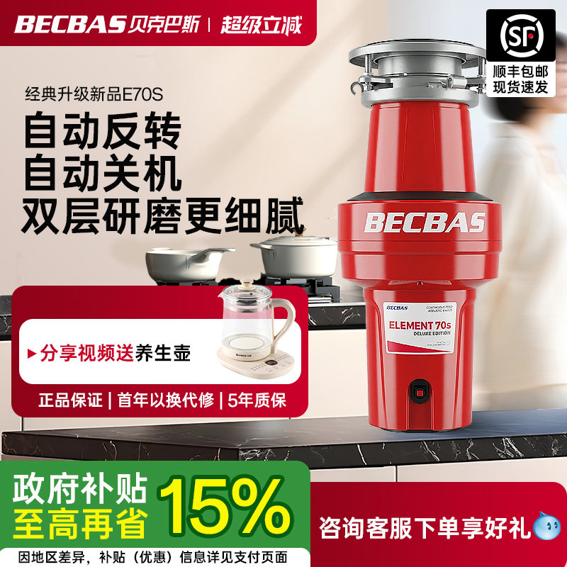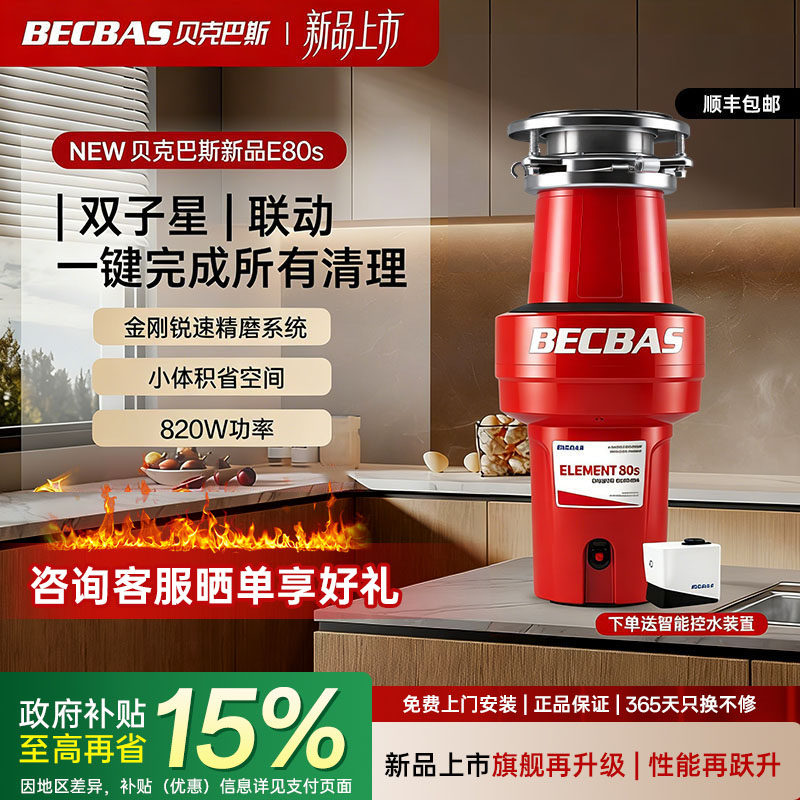 贝克巴斯垃圾处理器厨房家用S680PLUS全自动进水水槽厨余粉碎机
