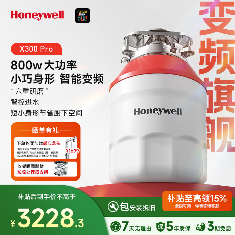 霍尼韦尔智能垃圾处理器超短款自动进水800瓦无刷变频电机X300P