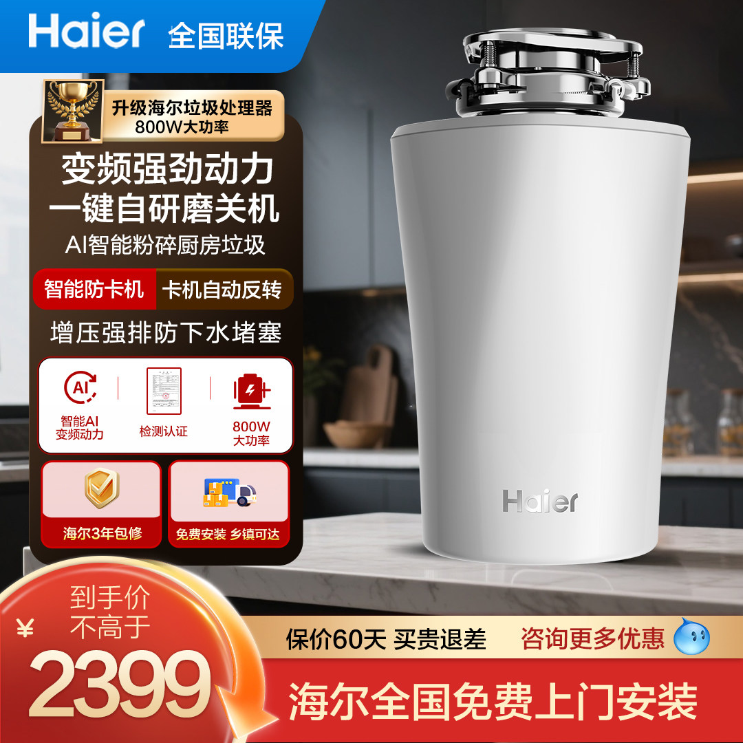 海尔厨余垃圾处理器家用水槽厨房食物垃圾研磨粉碎机搅拌自动进水