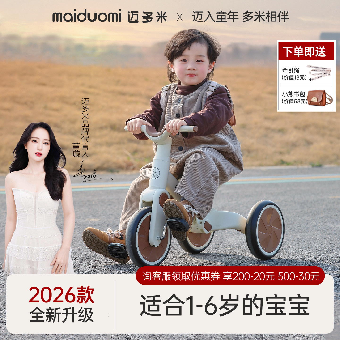 迈多米儿童三轮车1到3到6岁婴幼儿宝宝脚踏平衡车小孩脚蹬单车