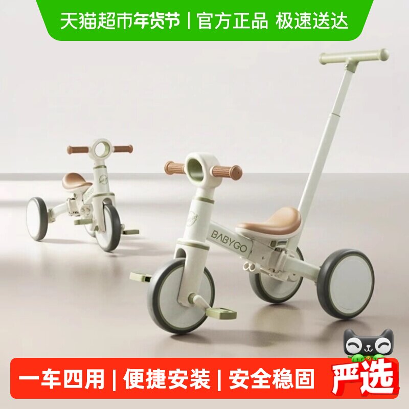 BABYGO儿童三轮车脚踏车遛娃神器多功能轻便自行车宝宝小孩平衡车