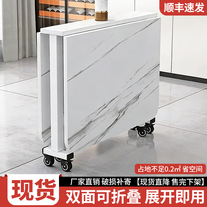 可折叠家用餐桌简约现代厨房长方形桌带轮子小户型出租房简易饭桌