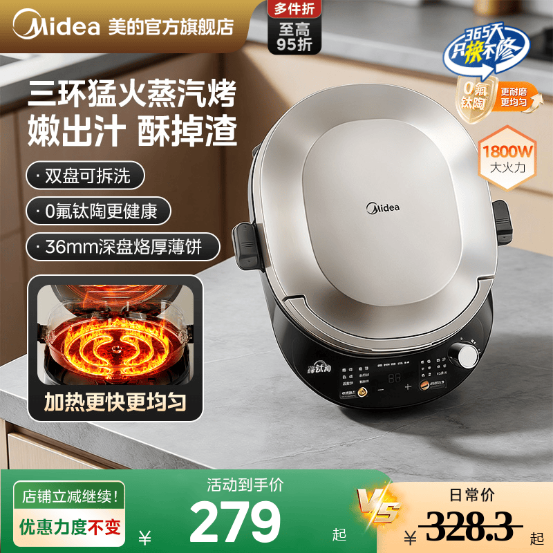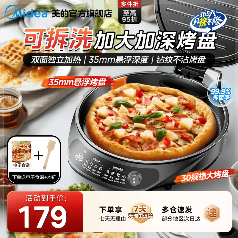 美的电饼铛家用双面加热加深加大多功能家庭烙饼专用官方旗舰正品