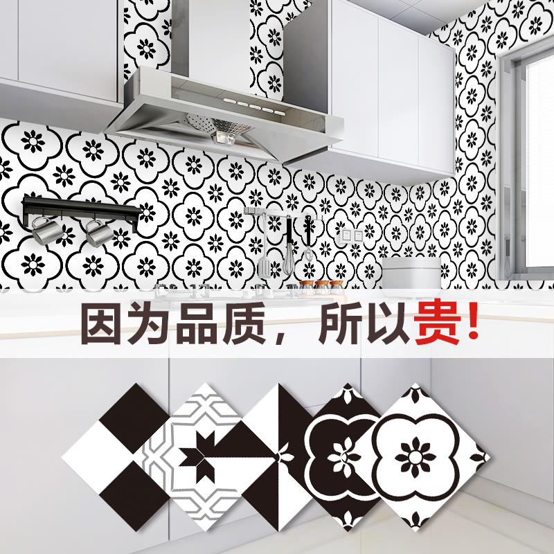 厨房墙贴自粘防水防油贴纸卫生间阳台现代简约黑白地板贴瓷砖地贴