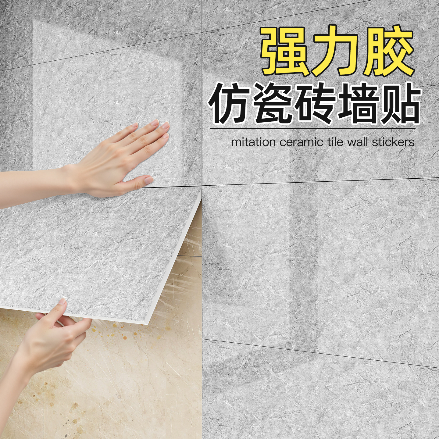 仿瓷砖墙贴铝塑板自粘防水防潮加厚可擦洗卫生间厨房墙贴纸护墙板