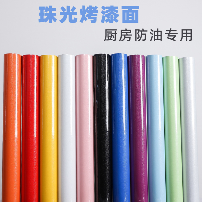 加厚烤漆纯色厨房墙贴自粘墙纸家具翻新贴纸衣柜珠光豆绿防水贴纸
