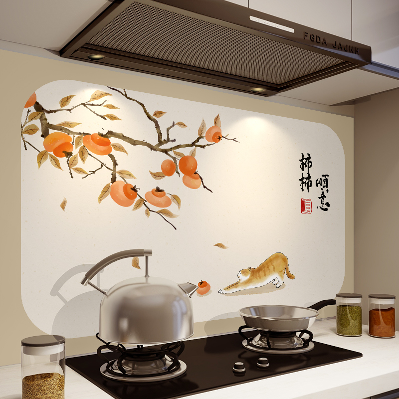 柿柿顺意闲趣创意防油贴纸自粘防火耐高温防水溅装饰贴画厨房墙贴