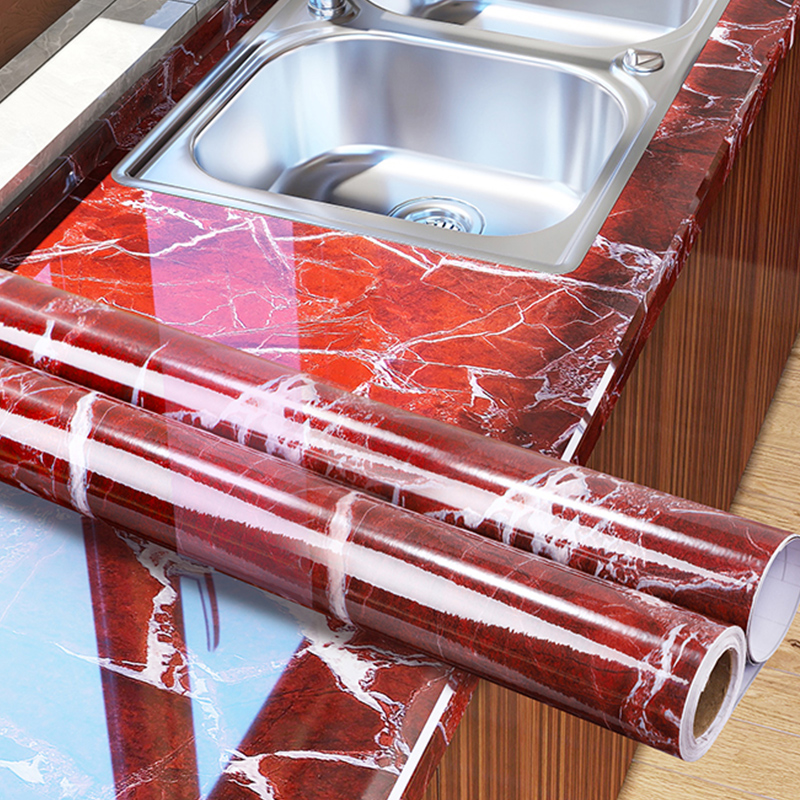 加厚红色大理石贴纸灶台防水贴膜台面桌面保护膜墙面墙纸厨房墙贴