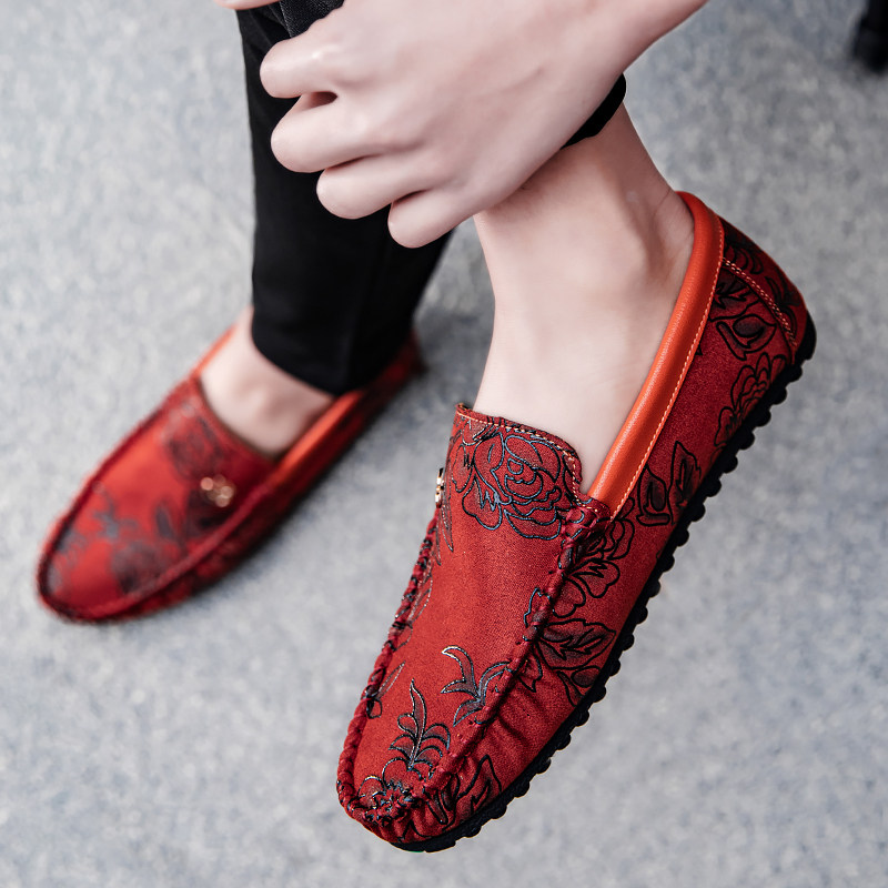 龙年限定红色豆豆鞋男夏季软底手工皮鞋男士懒人一脚蹬乐福驾车鞋