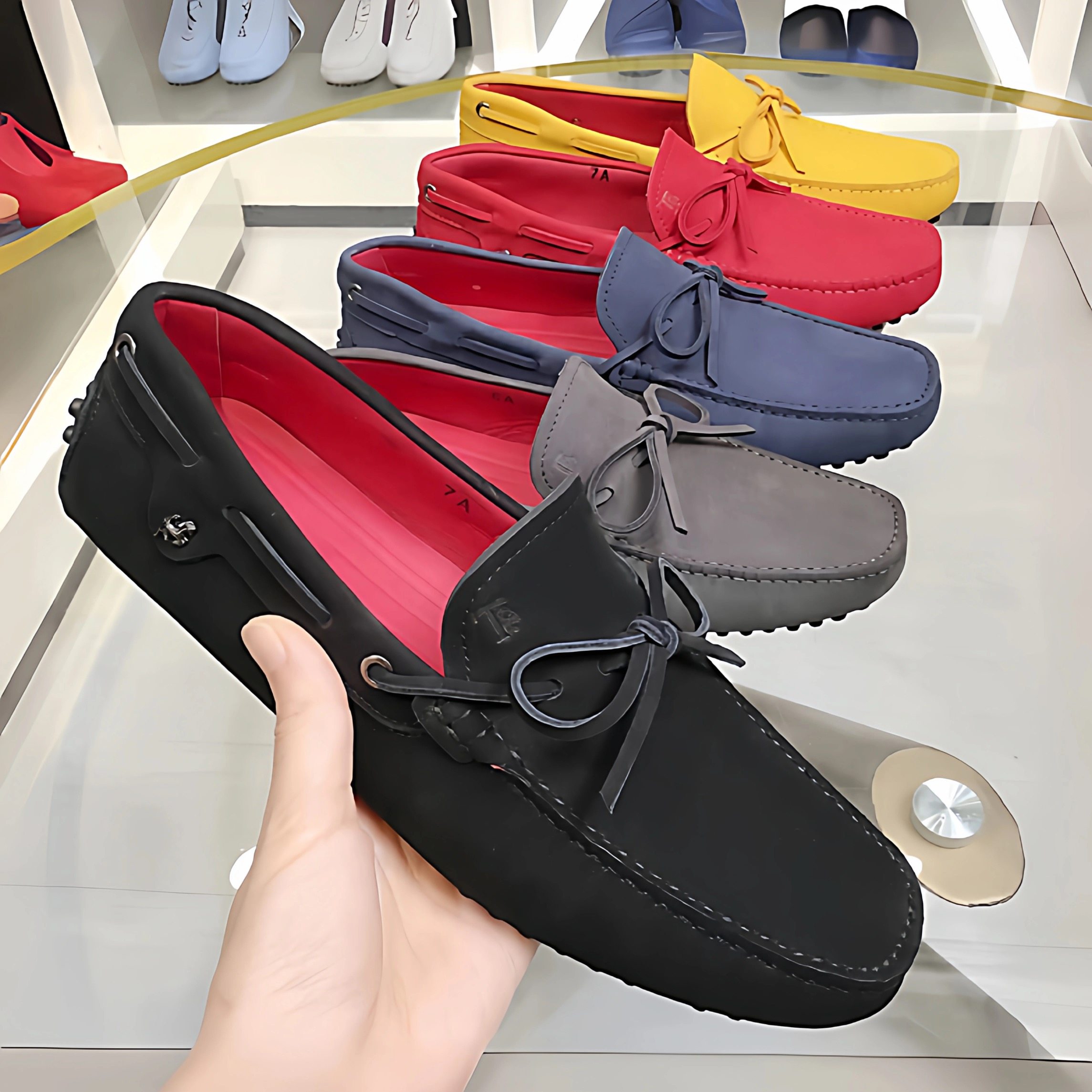 路痴高端新款鹿皮男士豆豆鞋商务休闲英伦风法拉利红色潮流驾车鞋