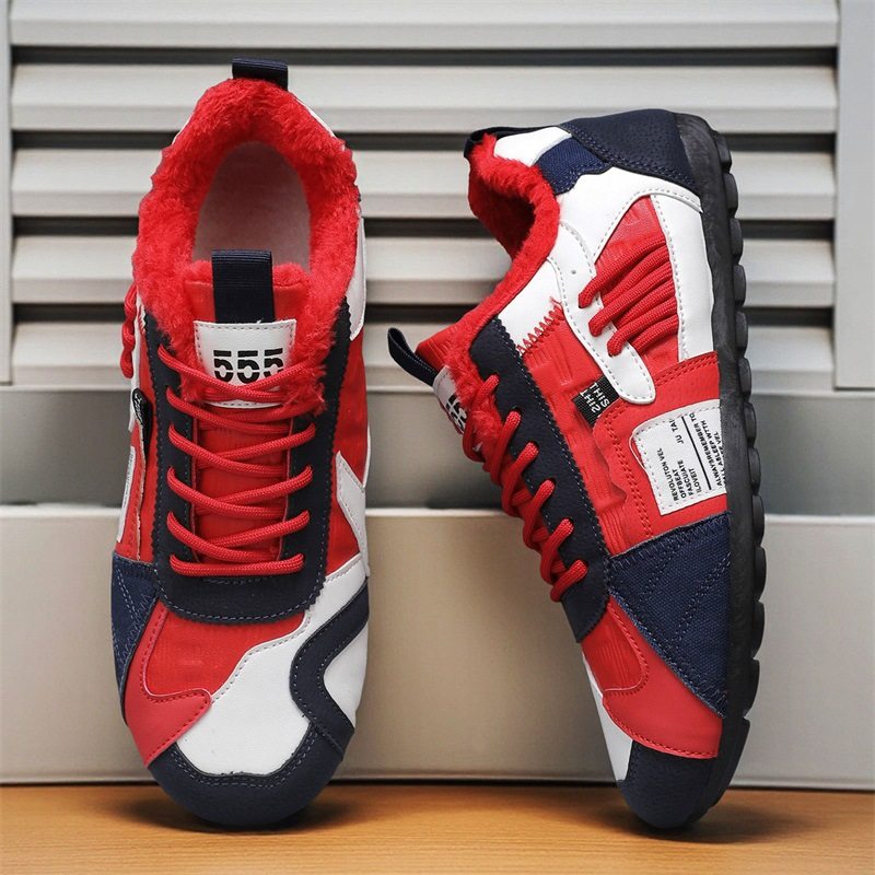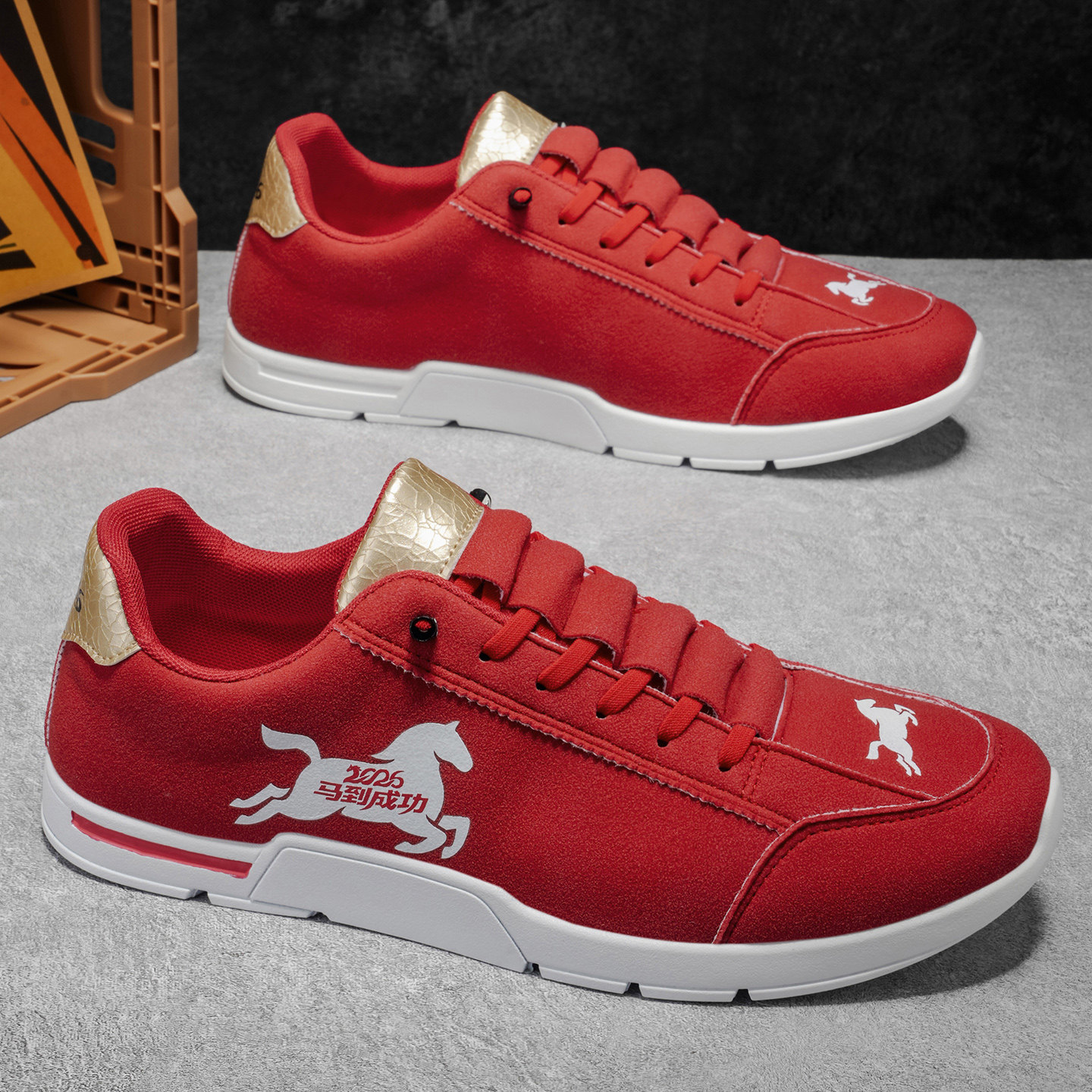 阿甘男鞋2026马年冬季防滑休闲板鞋软底本命年红色跑步运动豆豆鞋