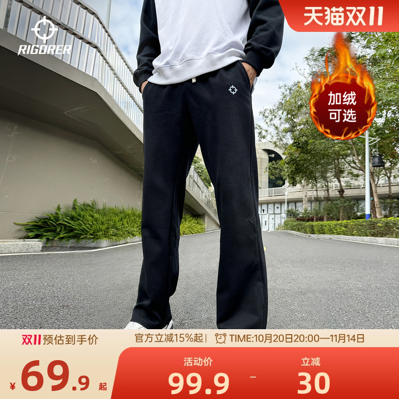 准者直筒宽松运动长裤秋冬新款男士休闲跑步篮球黑色针织加绒卫裤