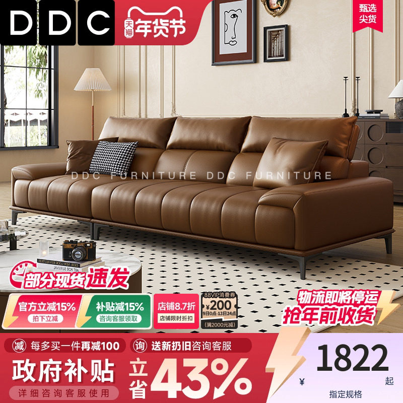 DDC 意式极简真皮沙发组合现代简约大小户型客厅轻奢头层牛皮沙发
