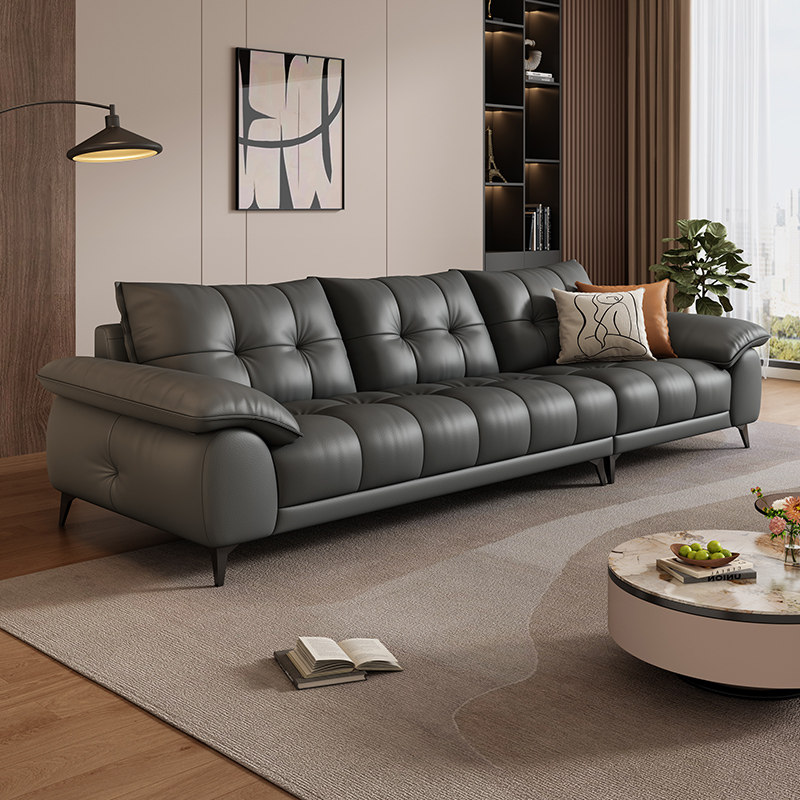意式钢琴键真皮沙发头层牛皮组合客厅转角大户型现代高端极简别墅